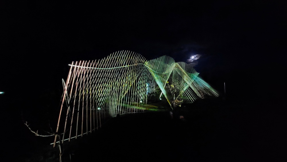 Glimt Light-Festival auf der Insel Langeland in Dänemark findet 2025 zum ersten Mal statt. Ich freue mich sehr beim Beginn dieses Festivals, dass vom Copenhagen Light-Festival mit organisiert wird, dabei zu sein! In den Medizin-Gärten von Tranekaer erhebt sich Bamboo-Light-Construction wie eine leuchtende Skulptur, die die natürliche Eleganz von Bambus mit Licht- und Videoeffekten vereint. Die Installation schafft ein lebendiges Zusammenspiel von Licht und Schatten und lädt das Publikum ein, in eine räumliche Erfahrung einzutreten, in der Natur und Technologie aufeinandertreffen. Die Installation aus circa 250 Bambusstangen ist circa 20 x 6 Meter groß und circa 4,5 Meter hoch. Bei Nacht wird sie mit 10 LED-Strahlern und drei Beamern beleuchtet, die in einer Schleife von 11 Minuten und 11 Sekunden wechselnde Licht- und Farbspiele auf die Bambusstangen zaubern. Für die Lichttechnik und Beamerprojektion ist wieder Ulrich Riebe verantwortlich und die ganze Show wird von dem Sound von Viz Michael Kremietz untermalt.