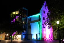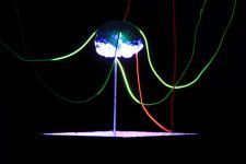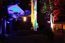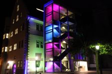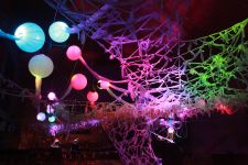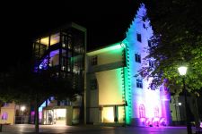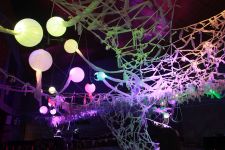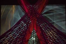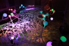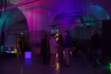 Eine speziell auf den Raum zugeschnittene Upcycling-Installation aus alten Video- und Kassettenbändern zauberte ein sich ständig wechselndes Farb- und Schattenspiel auf Wand und Gewölbedecke.Die Livemusik von Dominik Morgenstern (Bundespreisträger Jugend musiziert) brachte die Installation und die Zuschauer der Kulturnacht zusätzlich in Schwingung.