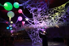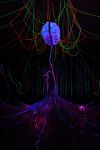 Im Zentrum der Installation steht das menschliche Gehirn – ein großes überdimensionales Modell gefüllt mit Informationen aus geschredderten Papier und weitere kleine Gipsmodelle in Originalgröße. Diese Gehirne sind durch ein komplexes Netzwerk aus Stoffstreifen und Seilen aus fluoreszierenden UV-Farben miteinander verknotet.